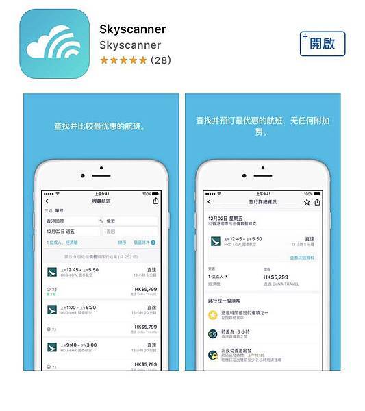 Skyscanner也有APP下載非常方便